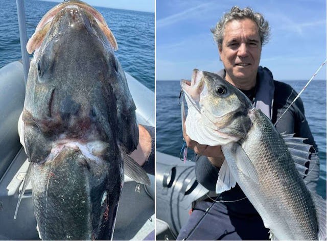 Vejam o robalo que o meu companheiro Luís Maia fez no seu primeiro dia de jigging, com sinais evidentes de uma terrível luta pela vida da qual terá saído vitorioso: